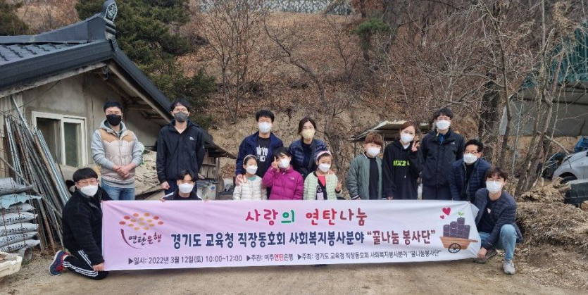 경기도교육청(교육감 이재정) 직장 동호회‘꿀나눔 봉사단’이 지난 3월 12일(토), 여주지역 소외 계층 가정에 연탄 나눔을 실시했다고 밝혔다. 이날은 봉사단 회원, 도교육청 소속 직원 및 자녀 20여 명이 참여한 가운데 나눔이 진행되었으며 모두 1,875장의 연탄을 배달했다.