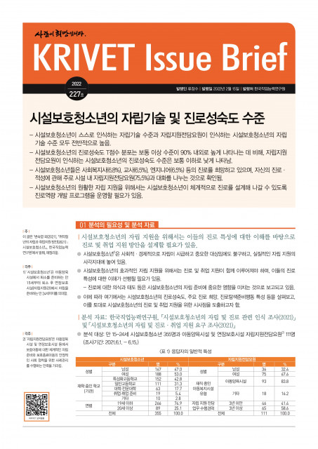 한국직업능력연구원, 시설보호청소년 대상의 진로·직업 인식 조사 결과 발표